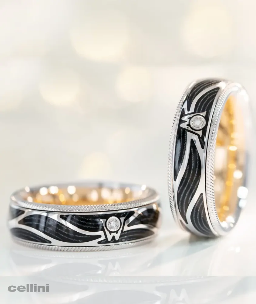 Different levels of engraving and the translucent Wellendorff cold enamel give the ring its special depth. The delicate engraving lines look like stylised angel wings, which give the piece of jewellery its special meaning. Every gentle spin of the ring makes the sparkling starry sky shine and fortifies the wearer with the power of her guardian angel. A guardian angel engraved inside the ring is intended to accompany and protect the wearer every day, for the rest of her life.