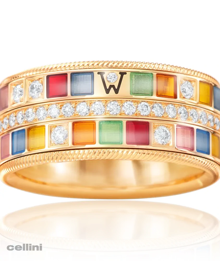 Which colour is the most beautiful? Green, the colour of hope? Blue, symbolising the sky and sea? Yellow, radiating warmth like the sun? Or red, representing love and passion? Every colour is unique. Wellendorff brings them all together in the GOLDEN RAINBOW ring with 18-karat gold and sparkling diamonds. The result is a magical declaration of a love for life.