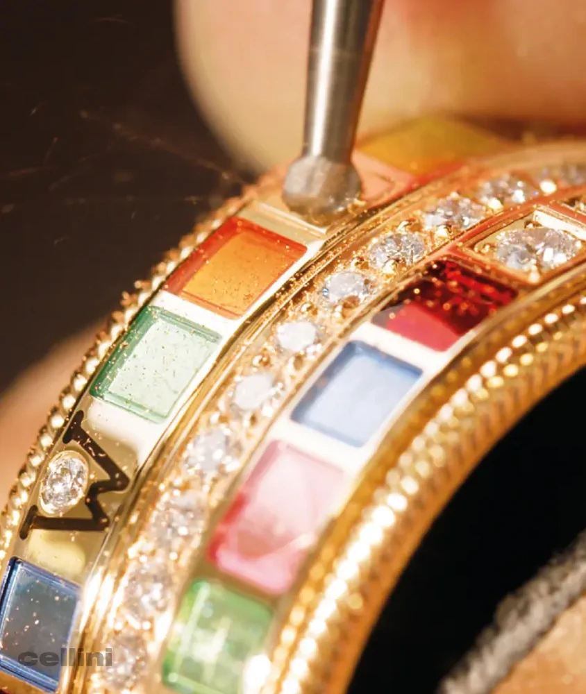 Every rainbow tells a story of new beginnings, hope and the beauty of being in the moment. The GOLDEN RAINBOW ring brings together six vibrant colours and sparkling diamonds to create a piece of jewellery that stands for joy and confidence. Created for people who love life in all its diversity.