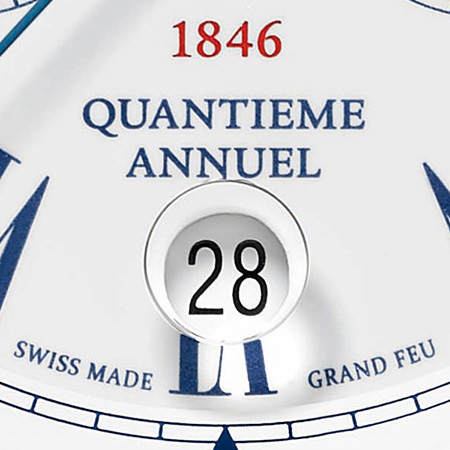 The iconic collection of Ulysse Nardin marine watches welcomes the Marine Annual Calendar Chronograph to its illustrious ranks. Technical achievement is expressed by the in-house UN-153 caliber behind the celebrated annual calendar function and a precision chronograph. Sheer artistry is delivered by the Grand Feu enamel dial. Created by Ulysse Nardin enamel specialists Donzé Cadrans, the lovely pale milky color of this enamel results from the process of this challenging art. Going back to the 17th century, the technique of Grand Feu enamel is a difficult one to master, making these stunning dials highly sought after by collectors.