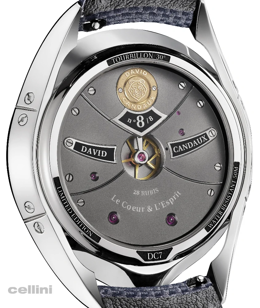 Imagined in resonance with the laws of nature, observed by Leonardo da Vinci who derived his Vitruvian Man from them. The DC7 offers perfect symmetry on the 3 o’clock – 9 o’clock axis and asymmetry on the 6 o’clock – 12 o’clock axis. The three-dimensionality of the piece is accentuated by the dial’s play on levels.