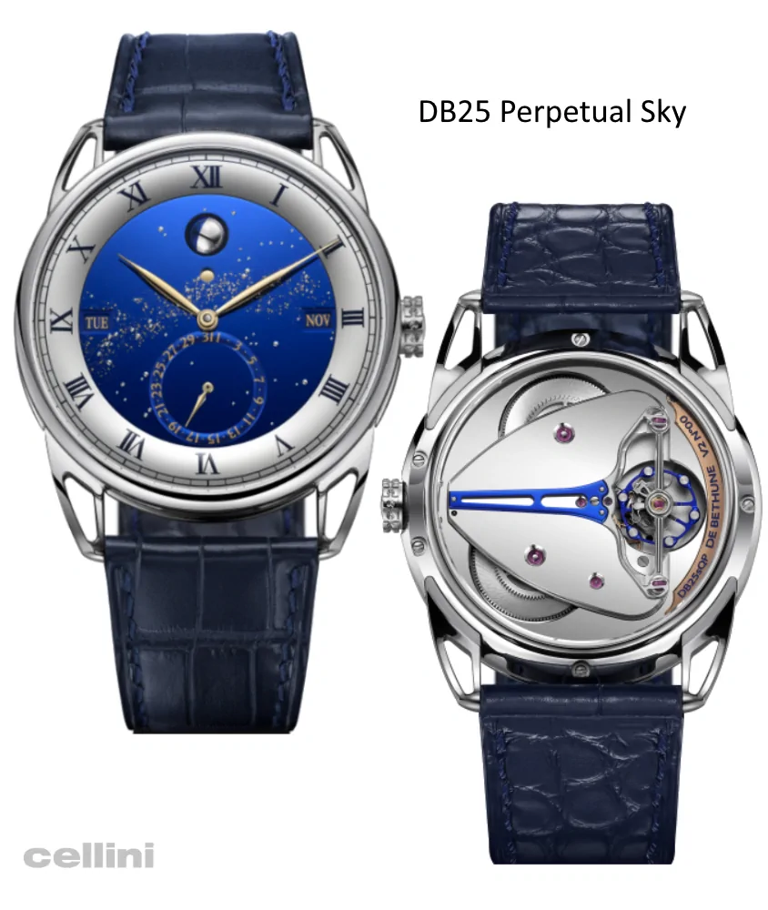 The DB25 Perpetual Sky is available in a limited annual edition, produced at the pace of the workshops in L’Auberson. To ensure maximum comfort on the wrist, the timepiece is fitted with an alligator strap and titanium buckle.