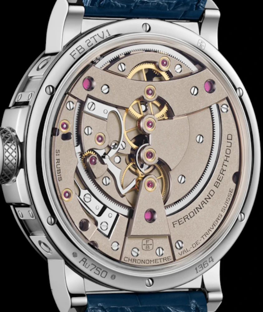 What’s new: Calibre FB-TV.FC displayed dial-side (fusee-and-chain, barrel, power-reserve cone). 15 mm flying tourbillon with central seconds. Stop-seconds + central-seconds zero-reset via crown pusher (3 o’clock).