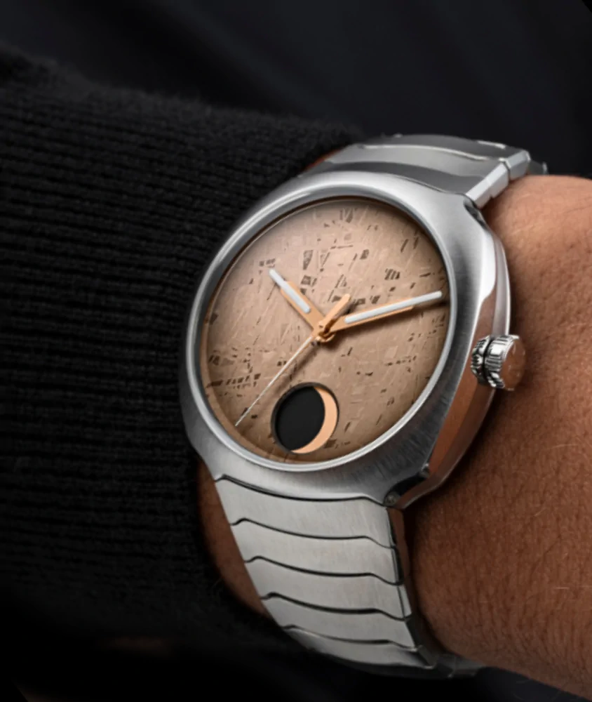 The Streamliner Perpetual Moon Concept Meteorite brings a fragment of the cosmos to your wrist. Crafted from the Gibeon meteorite, each dial has undergone a meticulous treatment that reveals the natural Widmanstätten pattern, natural structures of iron–nickel alloys that make every piece unique. The dials are further enhanced with a golden tone and our signature fumé effect. Behind its minimalistic moon phase display is one of the most precise mechanisms on the market. After a simple adjustment with a small pin, the watch will accurately depict the phases of the moon with one day’s deviation every 1,027 years.