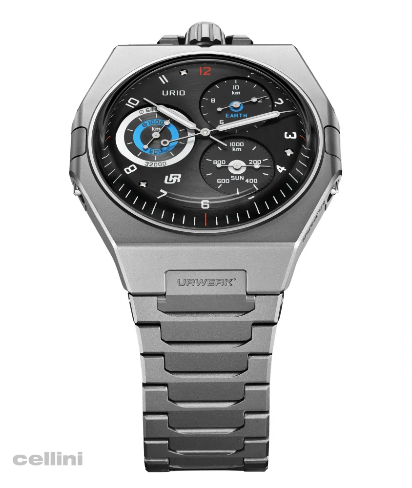 While the UR-10 features three sub-dials, it is not a regulator. Nor is it a chronograph or any form of calendar watch. Its subsidiary indications do not measure the passing of time. The UR-10 is dubbed a SpaceMeter for good reason: it measures the distances our planet travels across the time-space continuum. A world first!