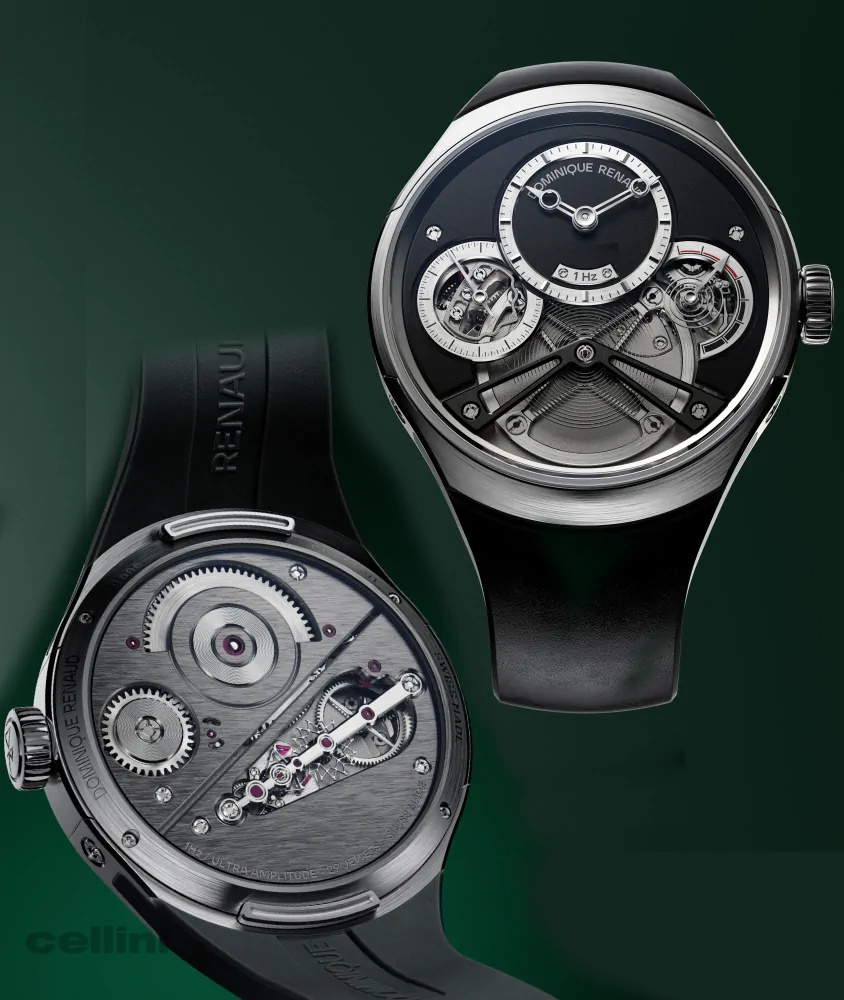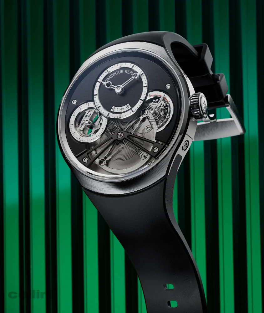 Powered by the entirely new Dominique Renaud BUA2024 movement, it operates at 1 Hz—one oscillation per second—echoing the resting rhythm of the human heart. This radically low frequency reduces impulses and disturbances, allowing time to unfold with exceptional calm and stability. A large 20 mm high‑inertia balance wheel masters the second, while a reengineered regulating organ enables ultra‑high amplitude beyond 360° without knocking. The result is a movement that runs far from its limits, delivering remarkable positional stability and consistency.