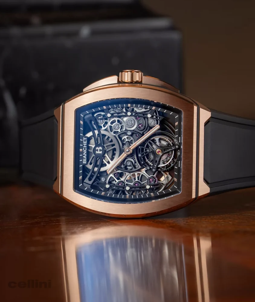 At its core lies Bianchet’s in-house movement, measuring just 3.85mm thick—the result of reimagining traditional watchmaking to achieve both thinness and performance. The flying tourbillon, paired with a golden rotor, enhances the movement’s efficiency while preserving a sense of depth and lightness. Every component is positioned with purpose, ensuring functionality remains uncompromised within the caliber’s refined architecture.